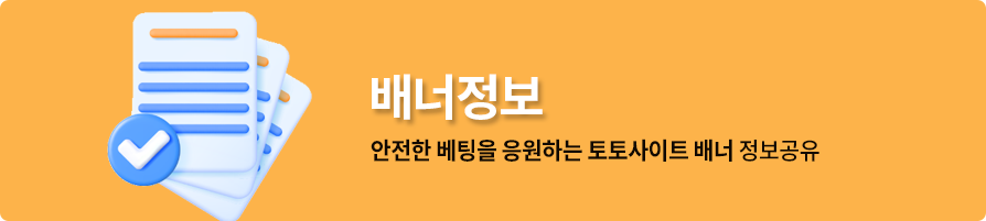 배너는 토토사이트들이 홍보를 하는 수단 중의 하나입니다. 배너를 통해서 꽁머니, 입금꽁머니, 업체들의 장점 등을 빠르고 쉽게 눈으로 확인 하실 수 있습니다. 이는 회원님들이 찾고있는 이벤트들을 빠르게 확인할 수 있으며 취향에 맞게 이용하는데 있어 매우 많은 이점을 드립니다. 또한 안전한 곳을 찾는 수고를 덜어 시간을 절약할 수 있습니다.
