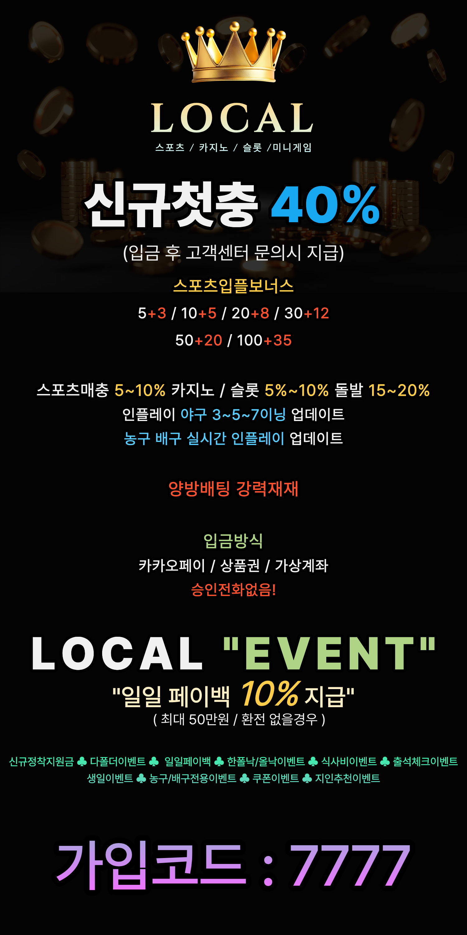 @로컬@ 본사에서 추가신규모집! 미니겜카지노등등 이벤트 석지니야 0 6 10.20 20:10 코드 7777 로 가입후 토토핫보고 오셨다고하면충전금액 + 첫충 + 2만원 더 지급해드립니다.