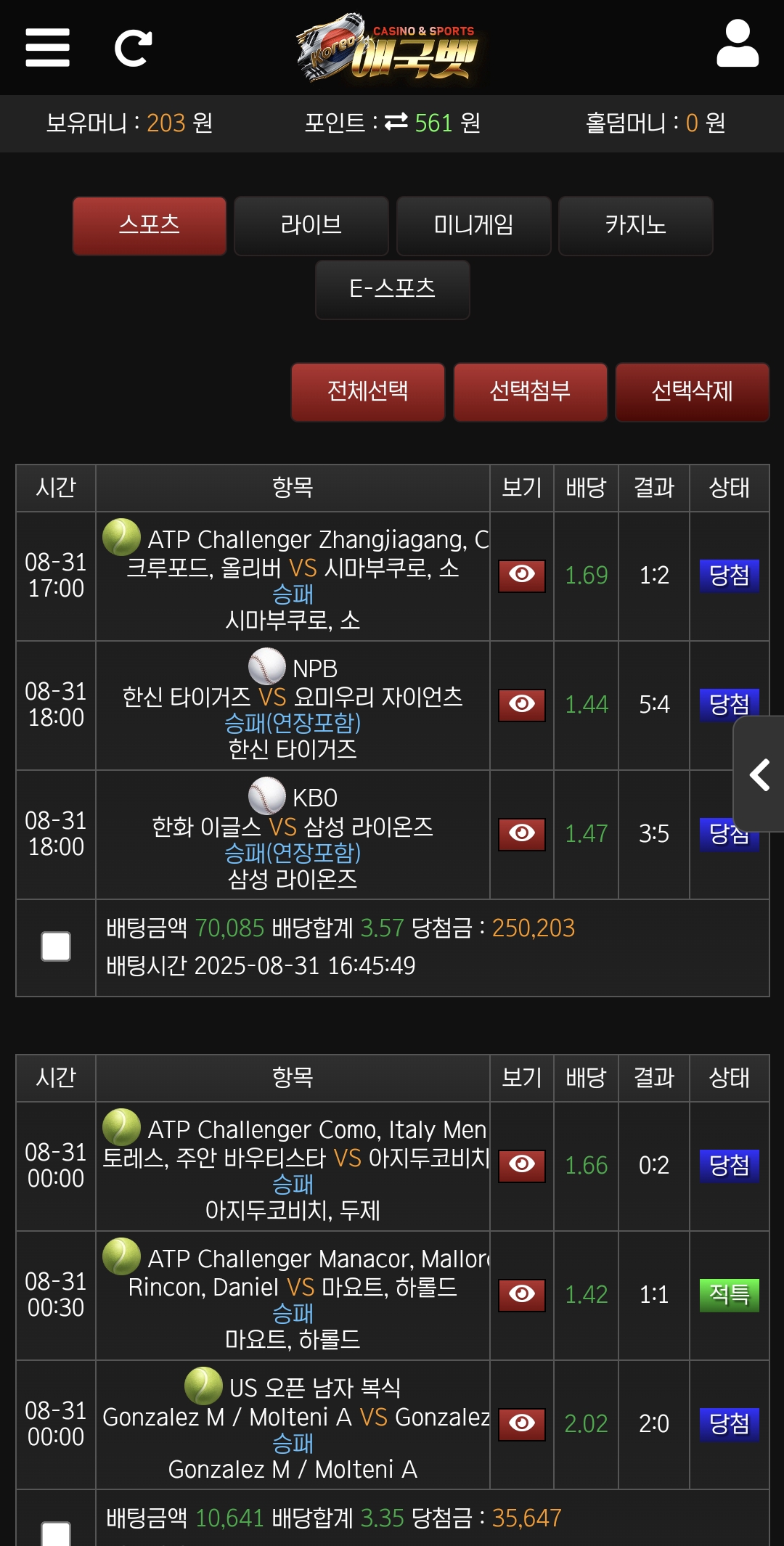 애국벳 홍보 원두이야기 0 35 08.31 21:53 오늘은 애국벳 2일차! 적중까지 해서 환전도 해봤는데 처리 속도가 정말 빨랐습니다! 첫충 이후에도 매충 이벤트로 사대 맞춰보세요~