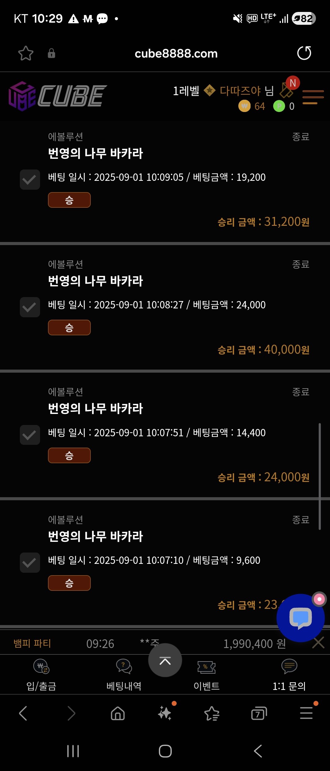큐브 사이트!!! 다따즈야 0 29 09.01 10:30 오늘도 충전해서ㅜ바카라 재밋게 놀앗네요 상승세 탄기분입니다어제는 중타 첫는데 오늘은 상타 첫네여 환전이 빨라서 늘좋네요실장님이 기프티콘도 주고 축하해주셔서 더좋네요 ㅎ